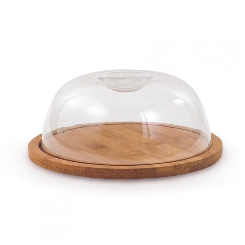 Queijeira prato em bambu e tampa em acrílico, cm 20cm diâmetro
