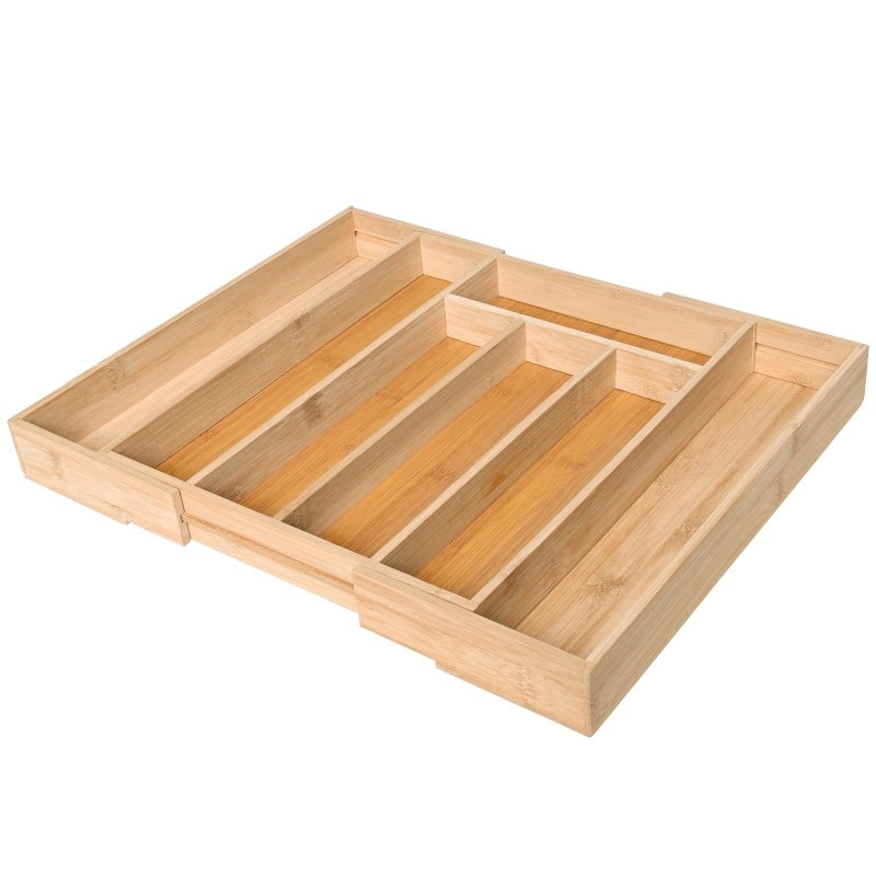 Porta talher em bambu extensível, muito prático para uma necessidade de mais talheres, ou mesmo para servir em um almoço. Tamanho 29x34x45