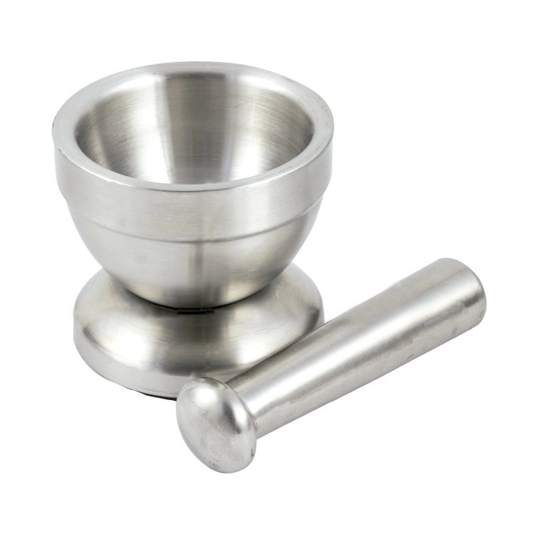 Pilão com socador em aço inox Tamanho 10x10x9cm