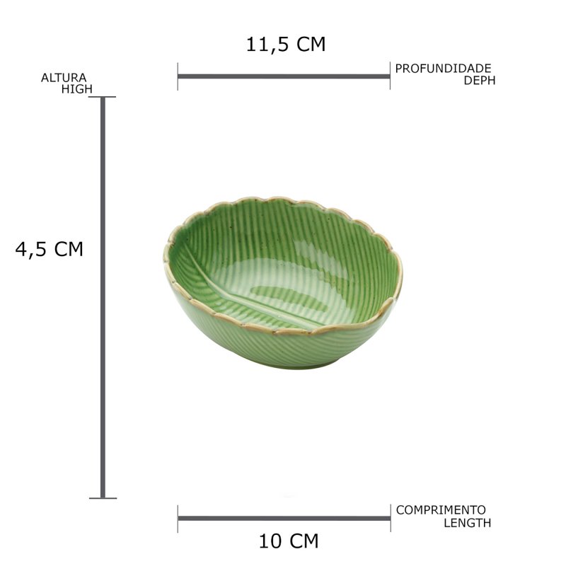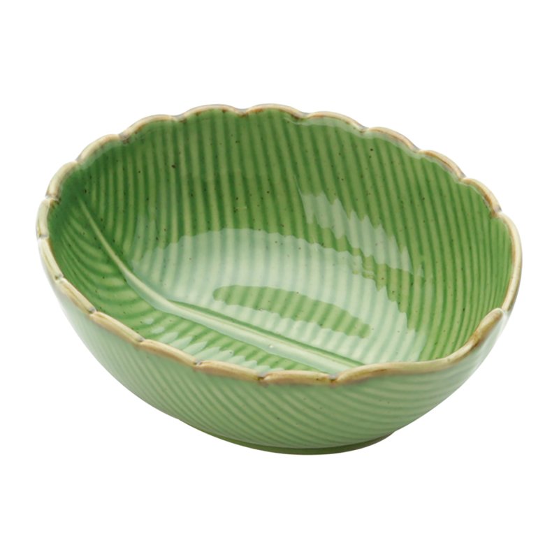 Com design arredondado e bordas onduladas, este bowl em cerâmica traz um toque delicado da natureza à mesa. A textura que imita nervuras de folha e o esmalte verde suave evocam frescor e autenticidade.