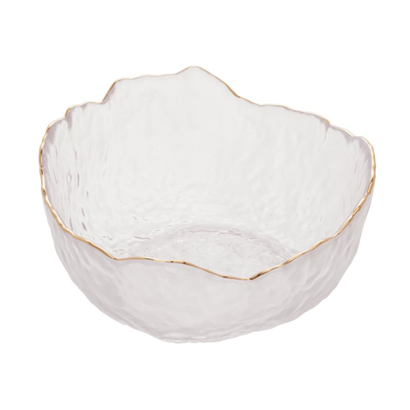 Delicado, versátil e com um toque de brilho sutil: esse bowl em vidro martelado de 14cm, é perfeito para servir entradinhas, sobremesas ou compor a mesa com elegância discreta. A borda com acabamento dourado valoriza a transparência do vidro e transforma até os detalhes mais simples em puro encanto.