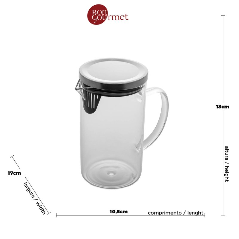 Capacidade: 1 litro Transparente, leve e fácil de combinar