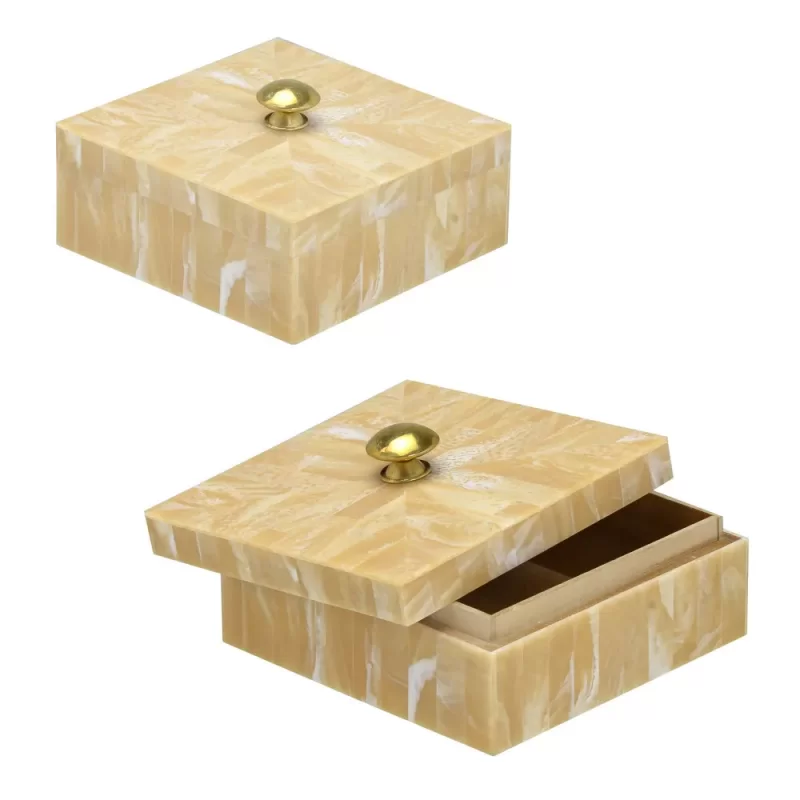 Caixa decorativa quadrada com puxador em metal.
