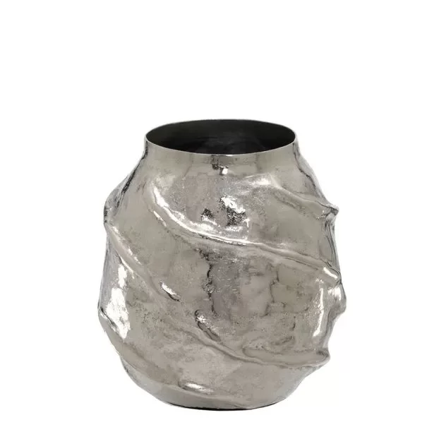 Design moderno e acabamento metálico com textura fluida e escultural. Esse vaso é uma peça de destaque, ideal para quem busca elegância com personalidade. Fica lindo sozinho ou com arranjos.