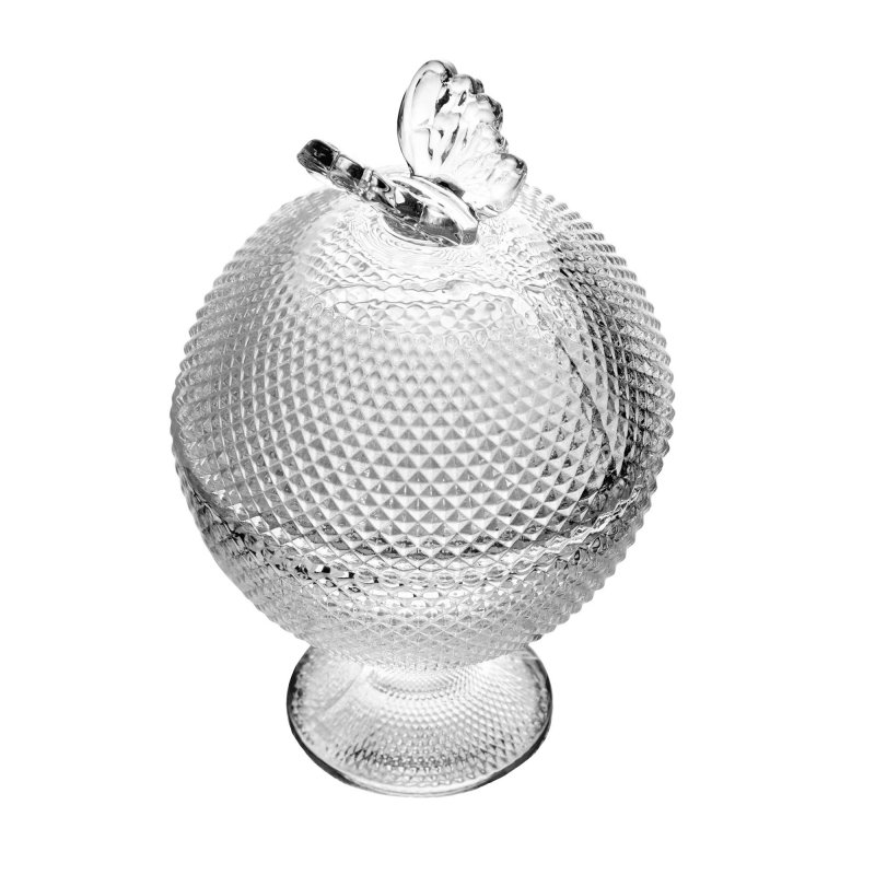 Potiche de vidro com 13cm de altura e a charmosa tampa c0m uma borboleta
