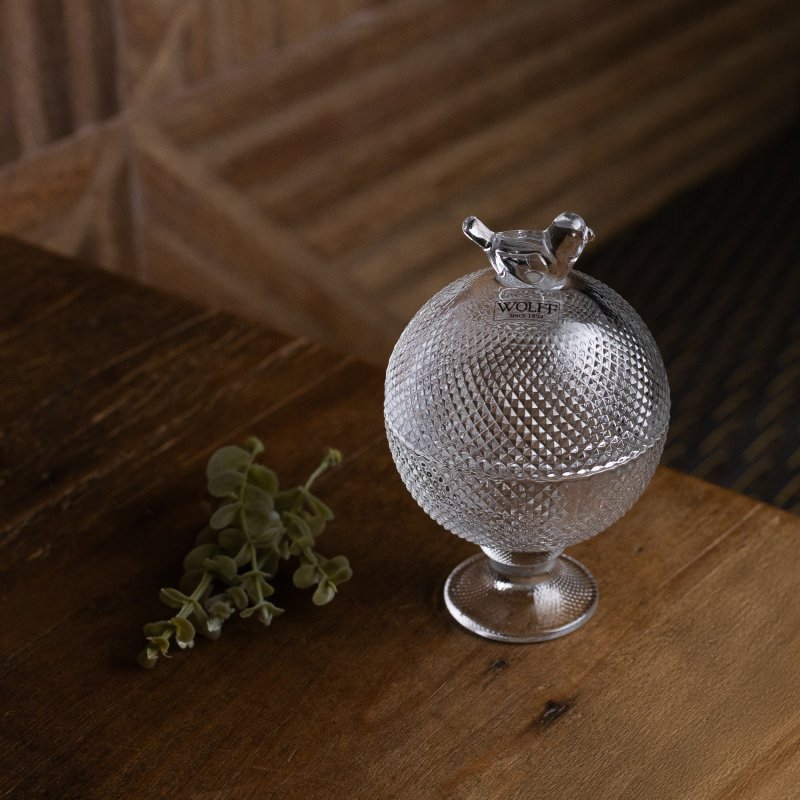 Potiche de vidro com 13cm de altura e a charmosa tampa com um pássaro.