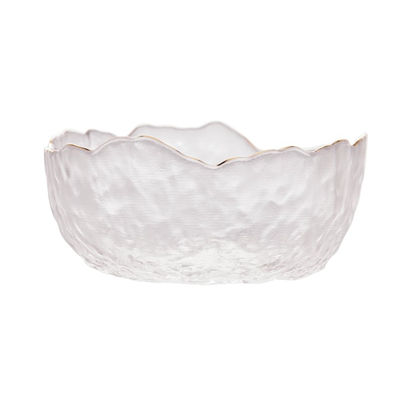 Delicado, versátil e com um toque de brilho sutil: esse bowl em vidro martelado de 14cm, é perfeito para servir entradinhas, sobremesas ou compor a mesa com elegância discreta. A borda com acabamento dourado valoriza a transparência do vidro e transforma até os detalhes mais simples em puro encanto.